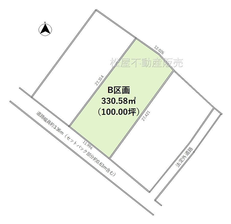 外観前面道路:北西側約2.7m幅(セットバック済)