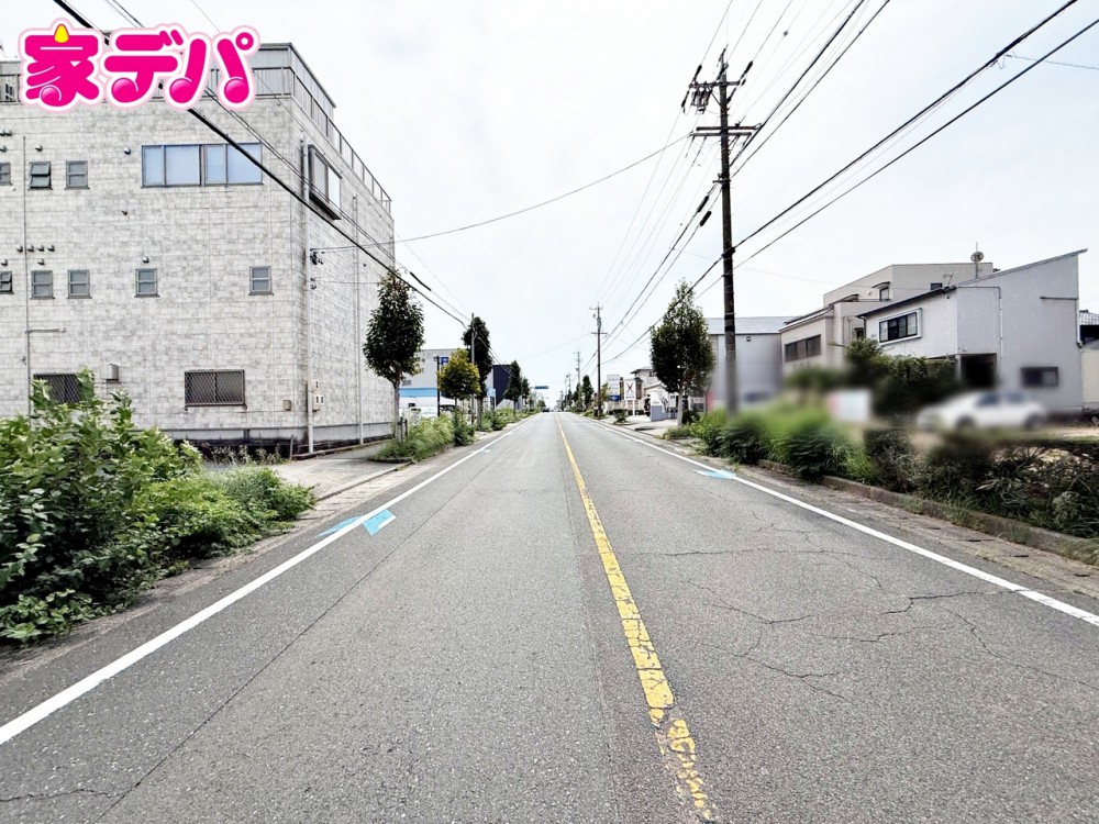 外観前面道路:東側 前面道路は見通しが良く、車の移動もスムーズに行えます。