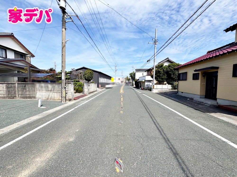 外観前面約9.5m幅の道路に面しており、通行や駐車の際に余裕がある広さです。運転が苦手な方でもラクラク!