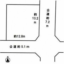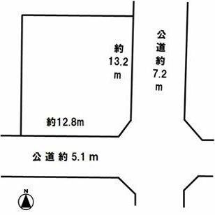 | 接道状況 | 状況:角地東側 幅員7.2m 公道 13.2m接面南側 幅員5.1m 公道 12.9m接面 | ||