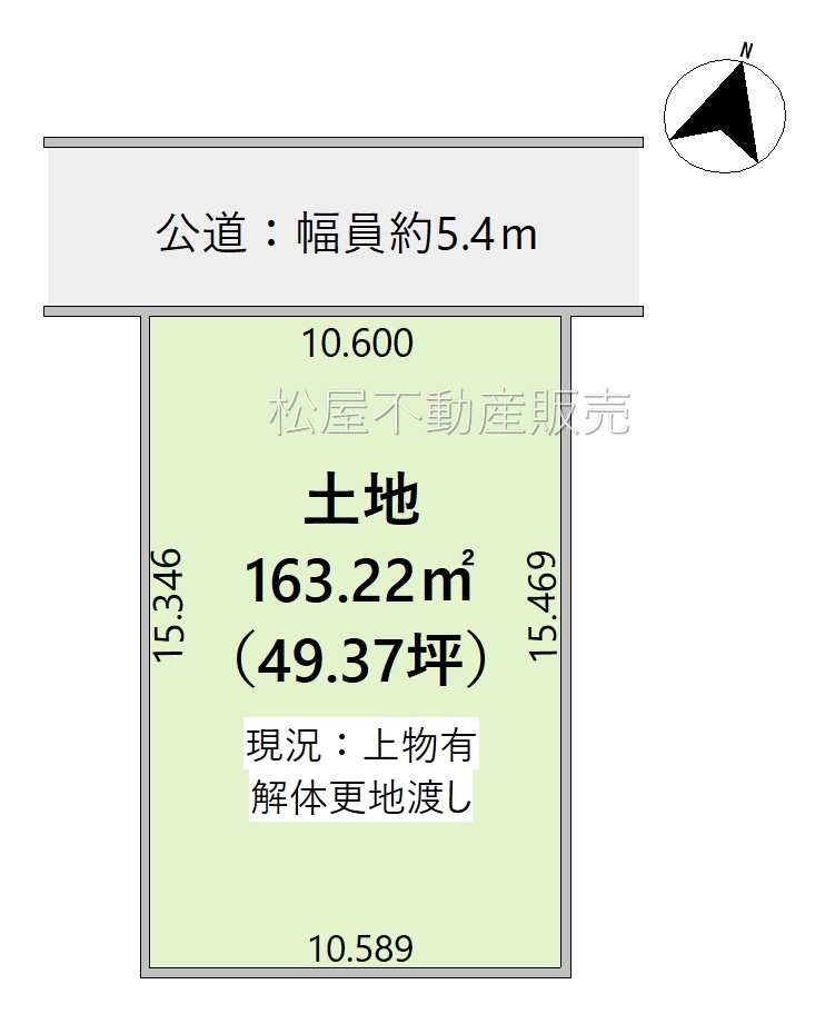 | 接道状況 | 状況:一方北側 幅員5.4m 公道 10.6m接面 | ||