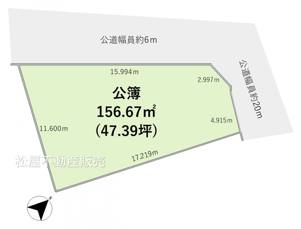 | 接道状況 | 状況:角地北西側 幅員6m 公道 15.9m接面北東側 幅員20m 公道 7.8m接面 | ||