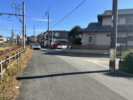 外観前面道路は公道で、車のすれ違いもらくらく広々6mの幅があります