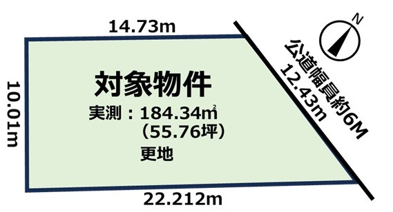 | 接道状況 | 状況:一方北側 幅員6m 公道 12.4m接面 | ||