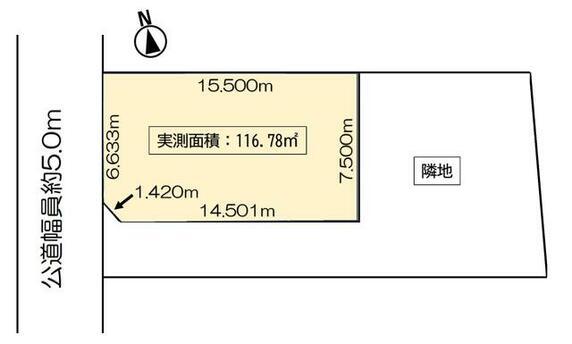 | 接道状況 | 状況:一方西側 幅員5m 公道 6.6m接面 | ||