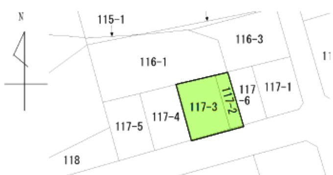 | 備考 | ※座標を求めない範囲での測量予定 ※117-2の敷地内に電柱と控えがありますが移設可能です | ||