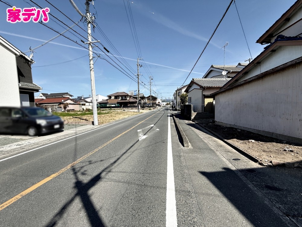 外観前面道路はゆとりの8.5m!車通りが少なく、駐車が苦手な方でも安心の道路幅です