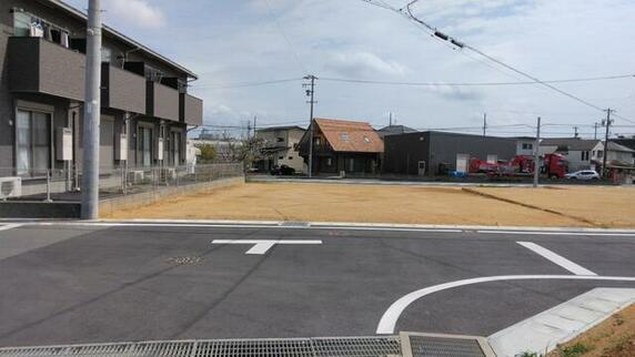 外観前面約6m幅の道路に面しており、通行や駐車の際に余裕がある広さです。運転が苦手な方でもラクラク!