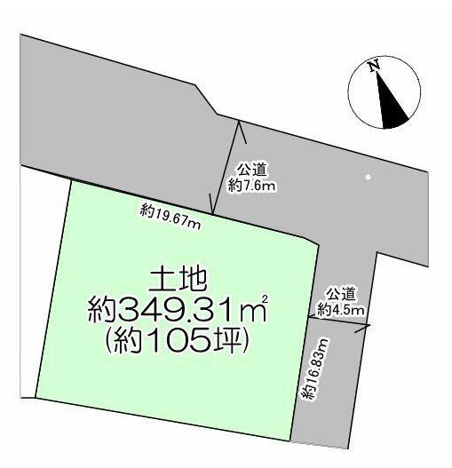 | 接道状況 | 状況:角地北側 幅員7.6m 公道 19.9m接面東側 幅員4.5m 公道 16.8m接面 | ||