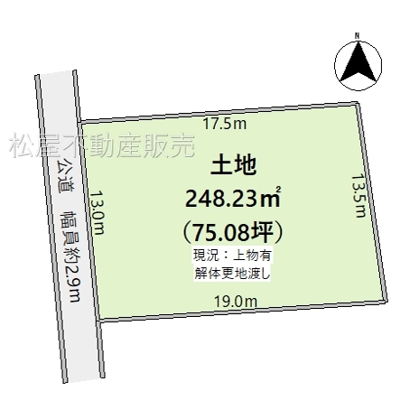 | 接道状況 | 状況:一方西側 幅員2.9m 公道 13m接面 | ||