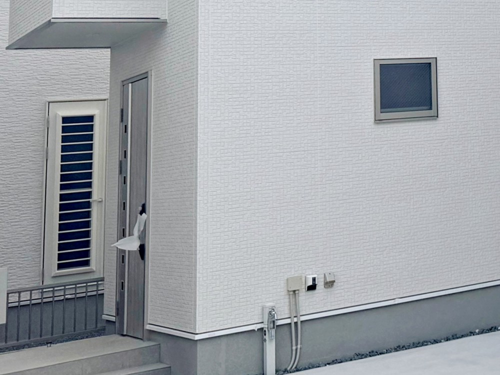 外観玄関横には立水栓が設置されています!お庭の水撒き、洗車、お掃除、お子様の水遊びなど便利です!