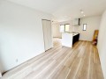 居間ナチュラルな色合いのLDKです。腰窓なので家具やインテリアの選択肢が広がりそうです。