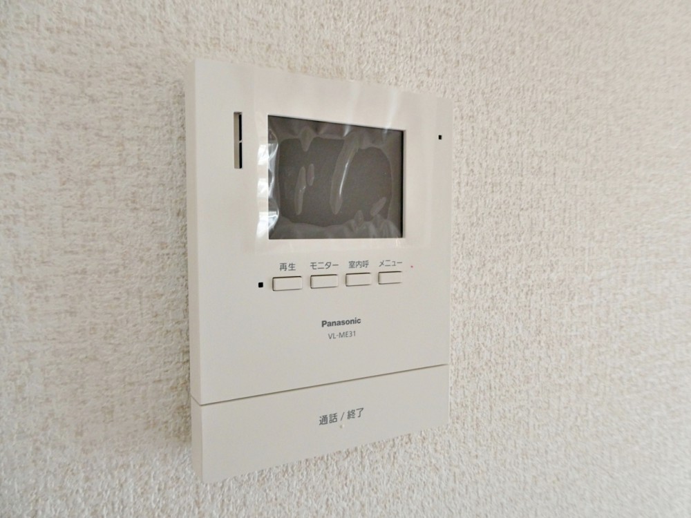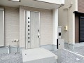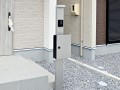 外観玄関前にはお洒落な一体型で場所を取らない、カメラ付インターホン・ポストがあり表札も付けることが可能