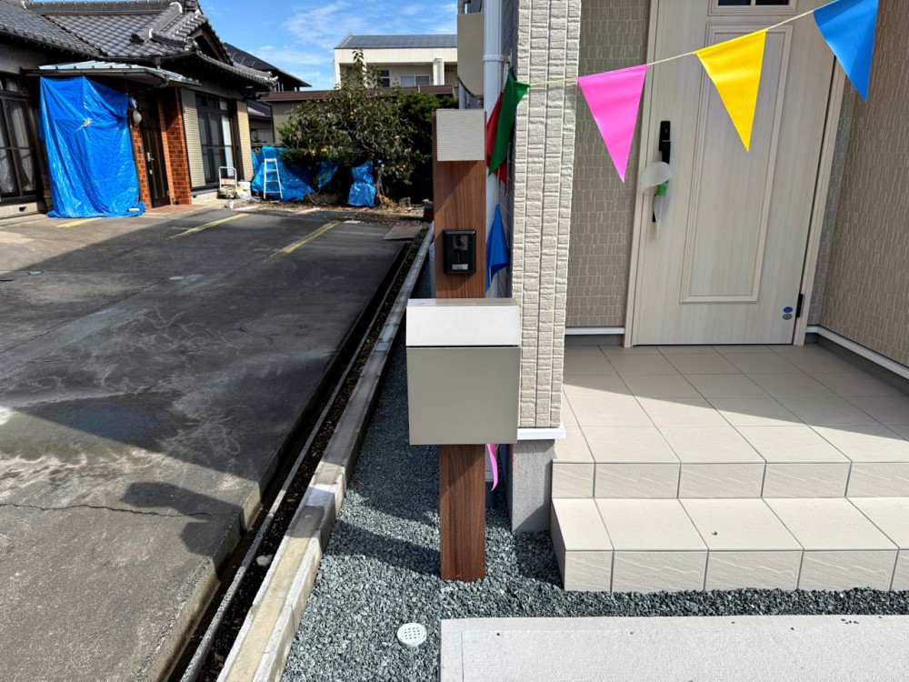 外観ポストやインターホン等一体型のシンプルな門柱が標準設備!