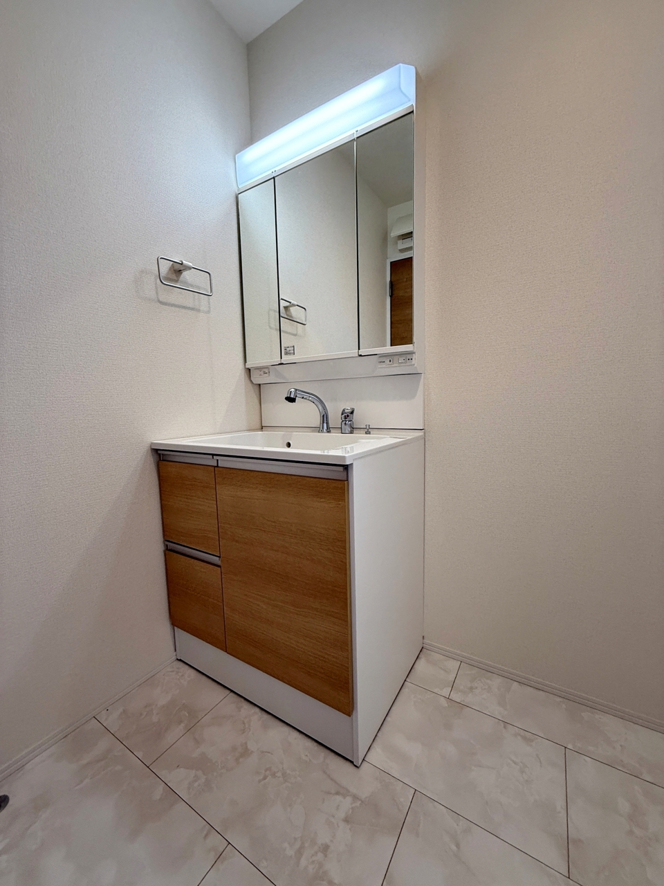 その他画像【洗面台】 洗面台の三面鏡の裏には収納があるので、見られたくないものの収納に便利