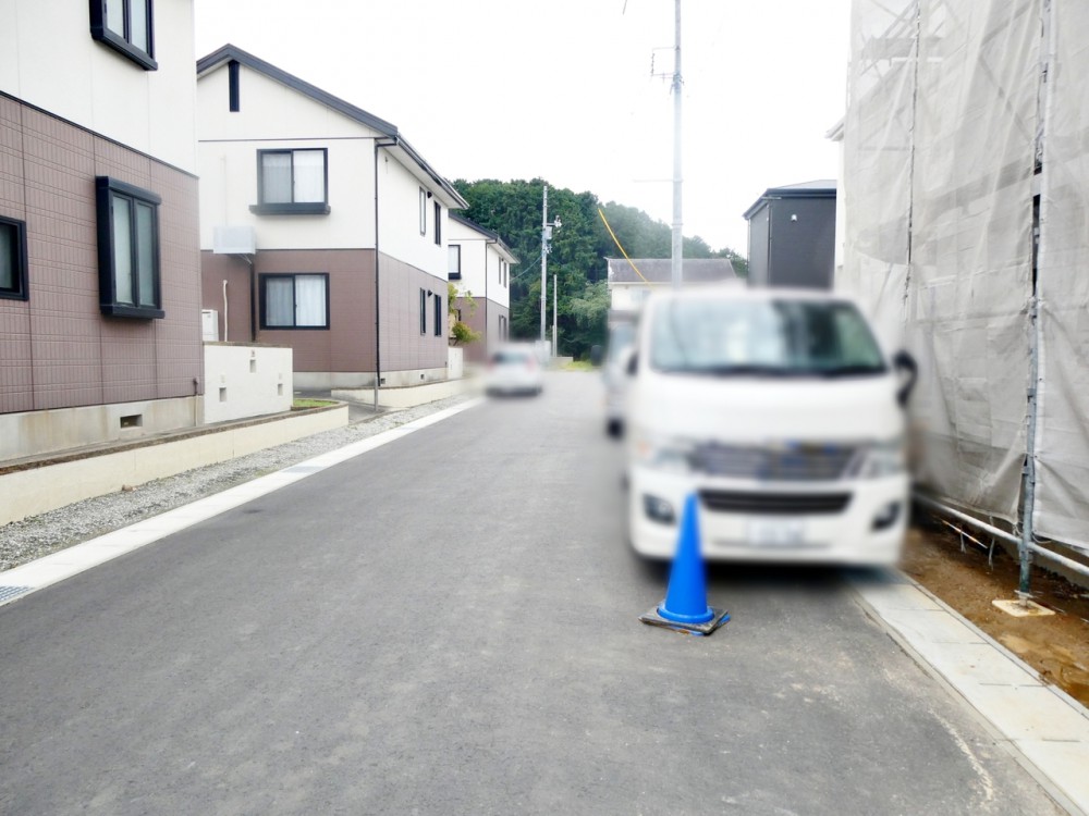 外観前面道路:東側約6m幅。車通りが少なく、駐車が苦手な方でも安心の道路幅です