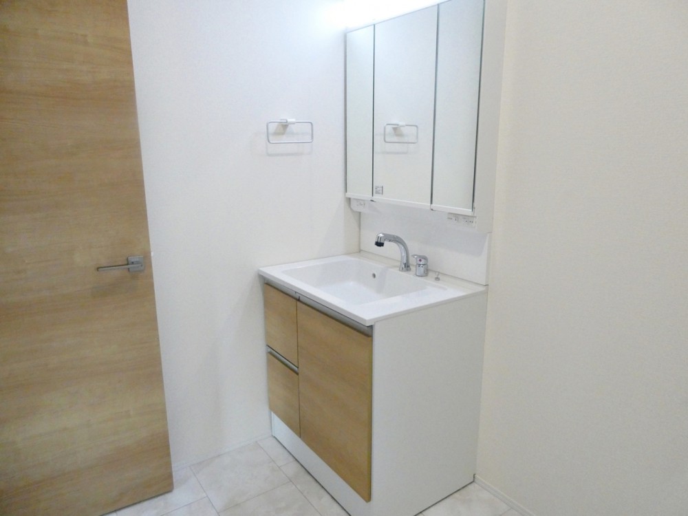 その他画像【洗面台】 洗面台の三面鏡の裏には収納があるので、見られたくないものの収納に便利