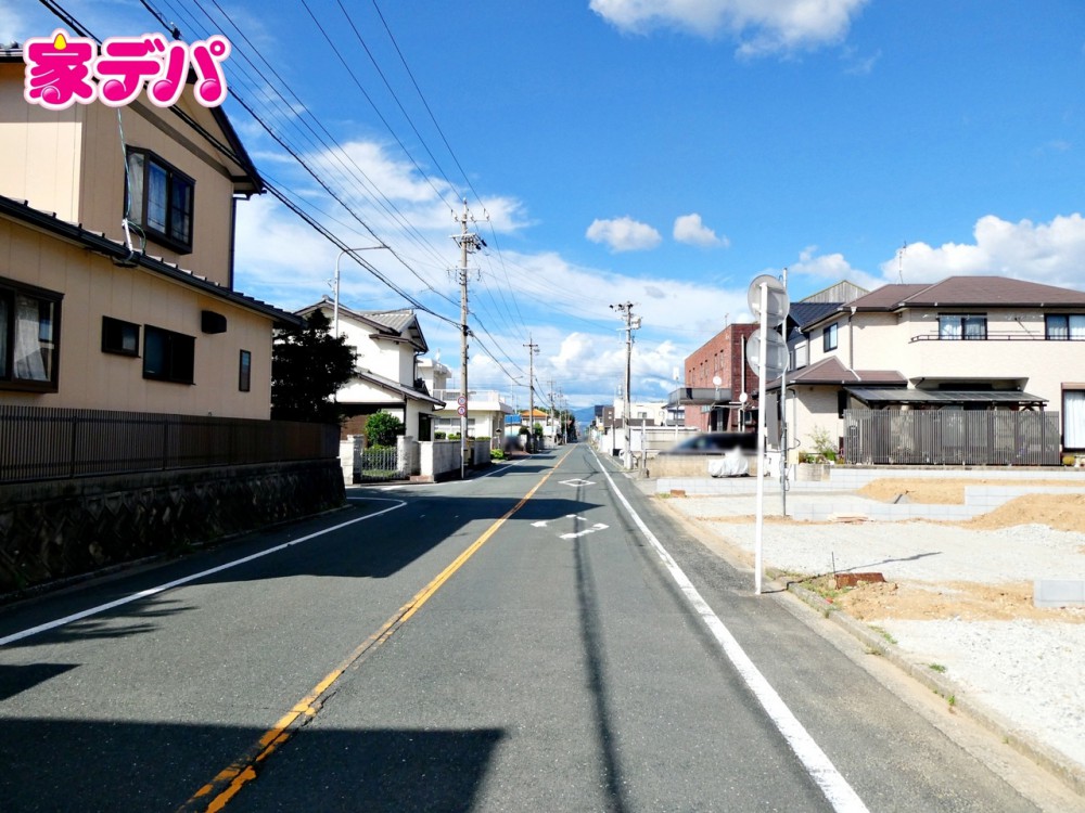 外観前面約8m幅の道路に面しており、通行や駐車の際に余裕がある広さです。運転が苦手な方でもラクラク!