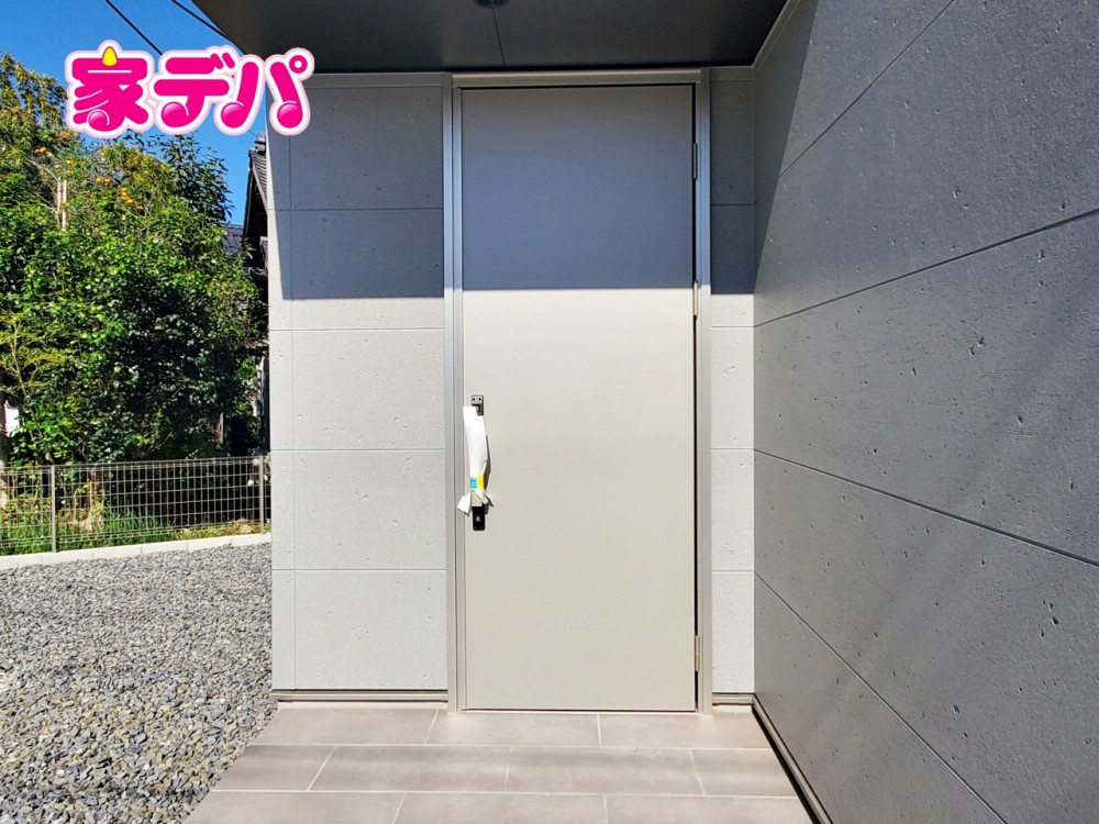 外観玄関前には一体型で場所を取らない、お洒落なカメラ付インターホン・ポストがあり表札も付けることが可能