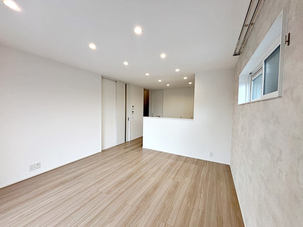 居間キッチン目線で撮影。キッチンから料理をしながらリビングの家族の様子が確認できます!