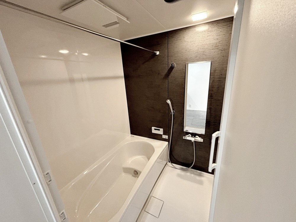 風呂【浴室】 浴室は1坪タイプで親子一緒に入浴しても広くご利用できます!ステップ付きの浴槽は節水効果も。