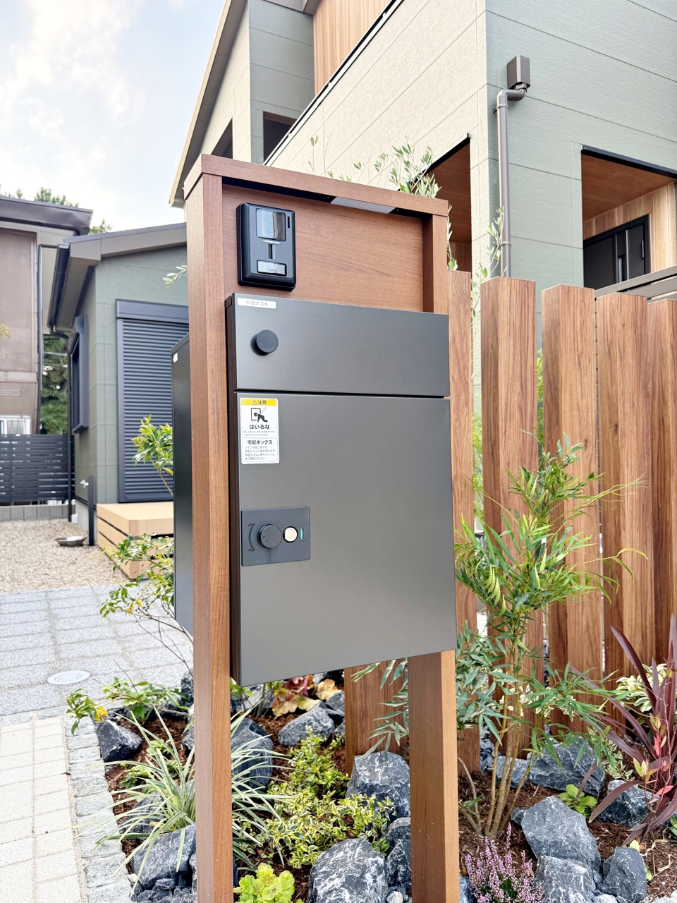 外観ポストやインターホン等一体型のシンプルな門柱が標準設備!
