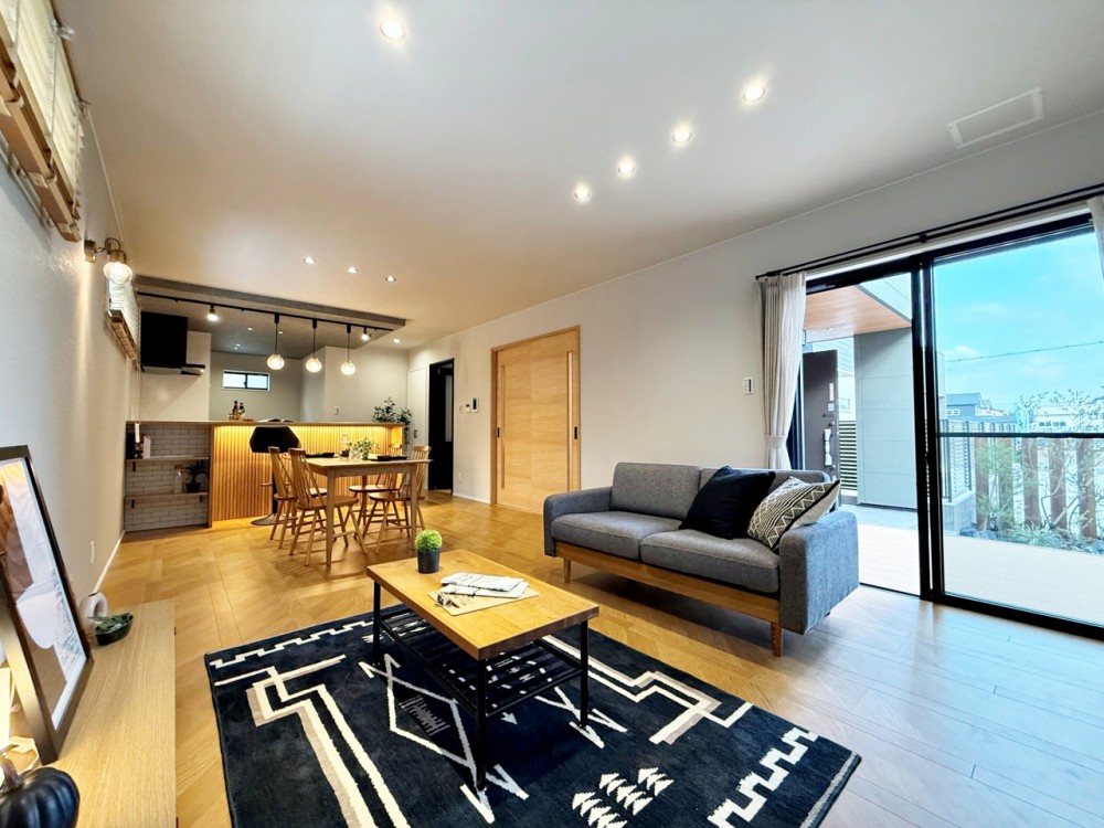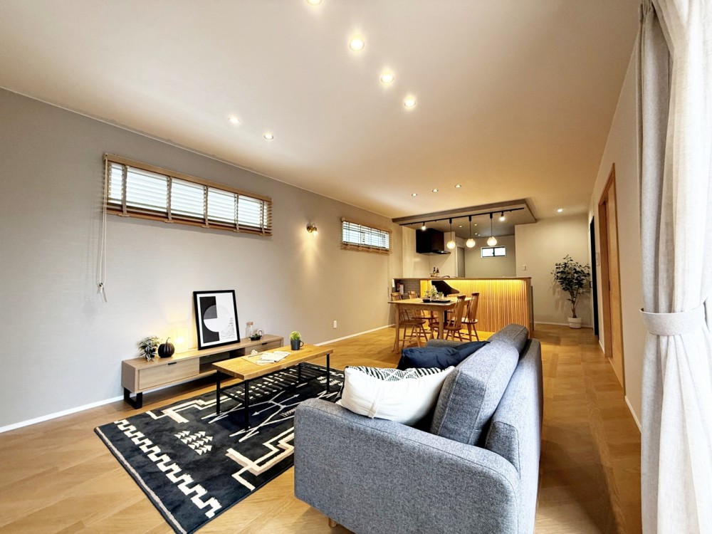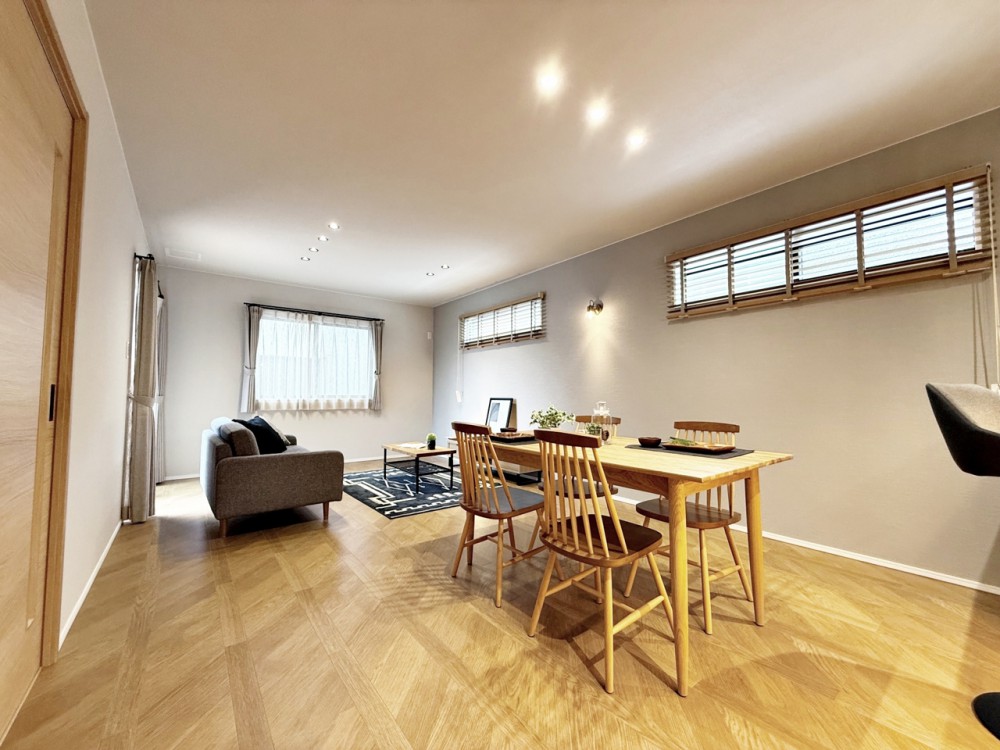 居間【リビング20.5帖】 LDKはゆとりの20.5帖、家族がのびのびと過ごせる場所です!大きな窓のあるリビングは、陽光あふれる明るい空間です。居心地良く、憩いの空間となりそうですね。