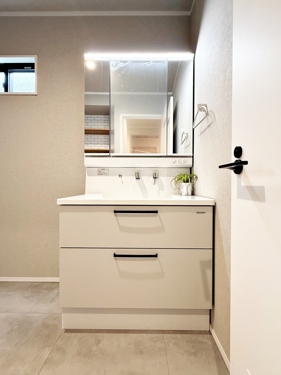 その他画像【洗面台】 洗面台の三面鏡の裏には収納があるので、見られたくないものの収納に便利