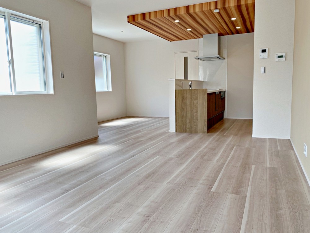 居間【施工例】温かみのあるナチュラルテイストのLDK。ダイニングセットを置いてもゆとりがあります!