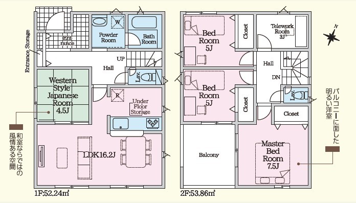 | セールスポイント | ■日当たり良好、角地■耐震 + 制震の家、QUIE(クワイエ)■テレワークルーム完備■リビング16.2帖■全居室収納付■2部屋からアクセスできるインナーバルコニー■緑地や田園が多い静かな住環境 | ||