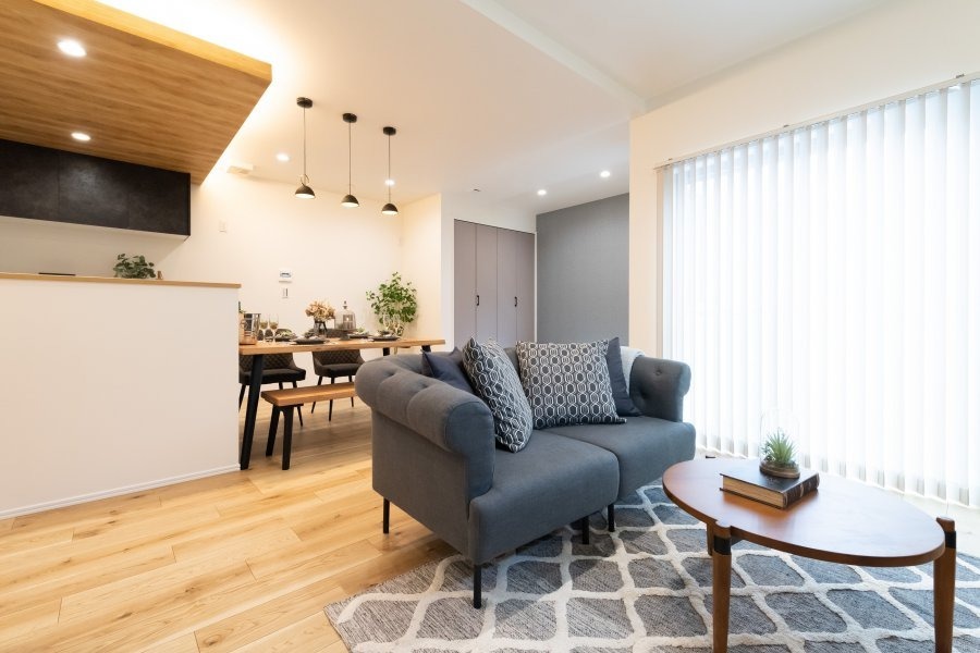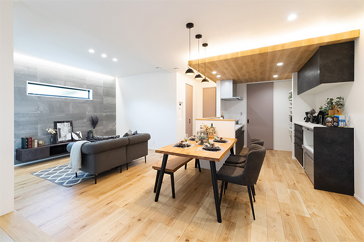 居間折り下げ天井が空間にアクセントを添えるLDK