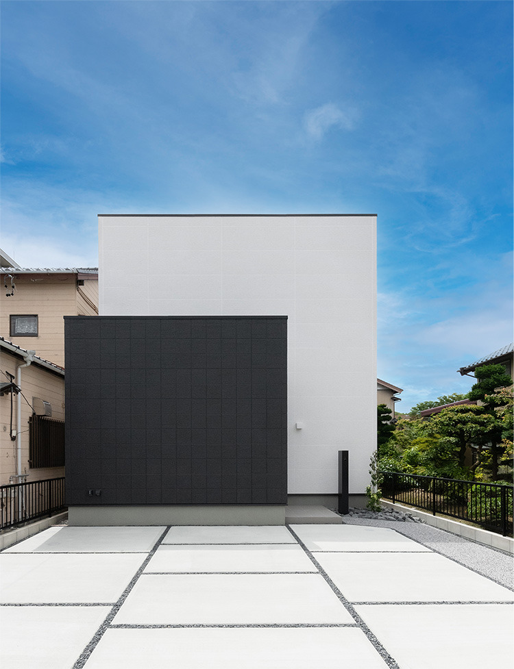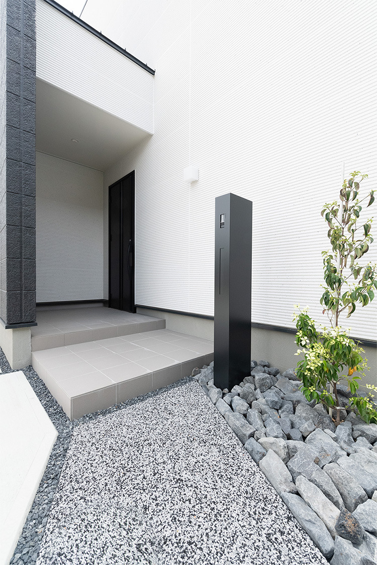 玄関白×黒ツートンカラーの外壁が印象的な外観です