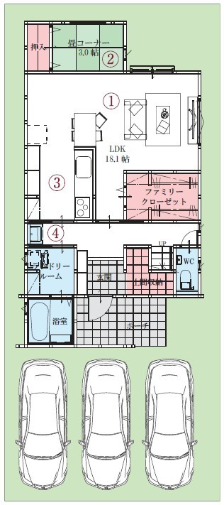 | 駐車場 | 有(3台) | 水道 | 公営 |