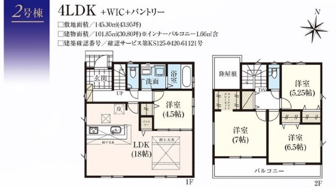| 土地面積 | 145.30m²(44坪) | 建物面積 | 101.85m²(31坪) |