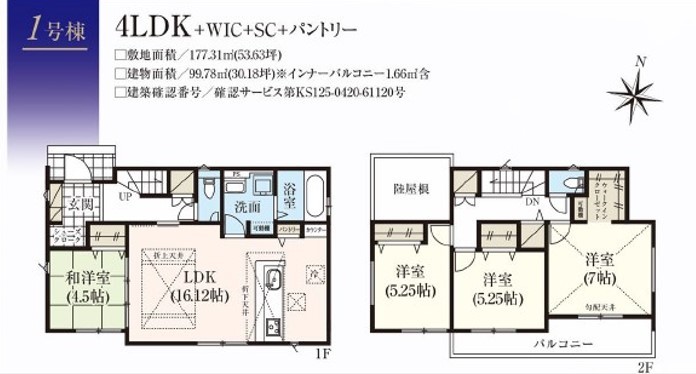 | 土地面積 | 177.31m²(54坪) | 建物面積 | 99.78m²(30坪) |