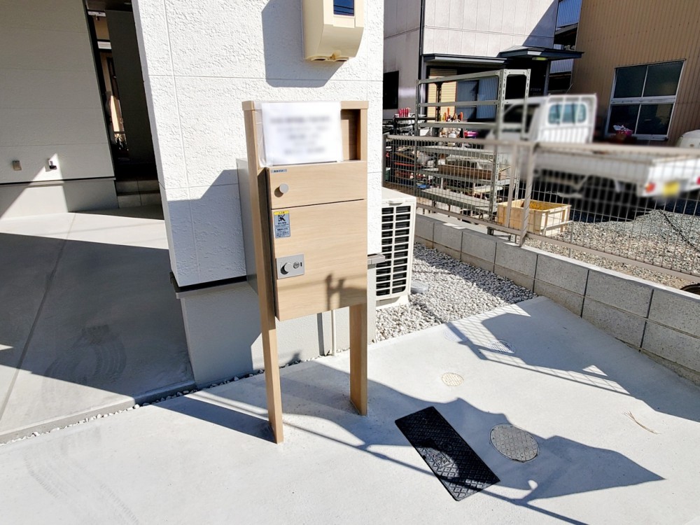 外観不在時でも荷物が受け取れる『宅配ボックス』付きのインターホン・ポスト。対面なしで受け取れるので、防犯対策にもなります。