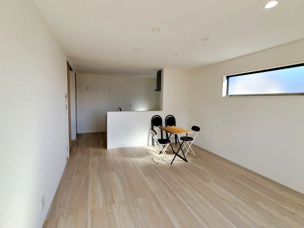 居間【リビング16帖】 街なかでも長時間の陽当りを叶える2階リビング設計は、ご家族のプライバシーにも配慮された快適空間。