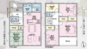 | 土地面積 | 145.48m²(44坪) | 建物面積 | 95.57m²(29坪) |