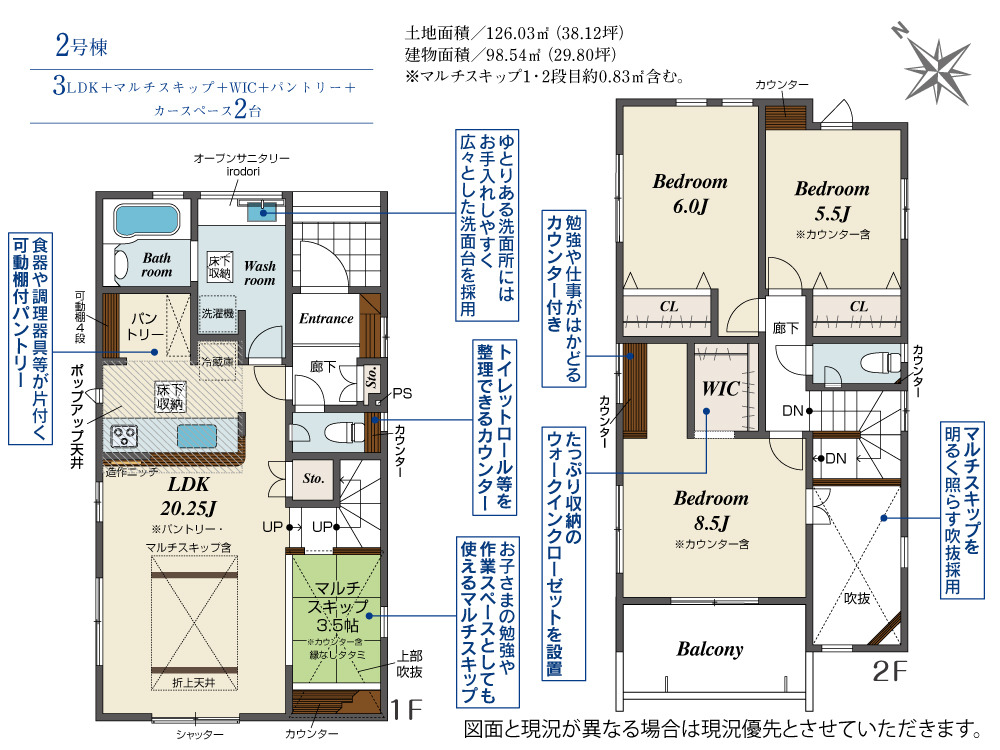 | 土地面積 | 126.03m²(38坪) | 建物面積 | 98.54m²(30坪) |