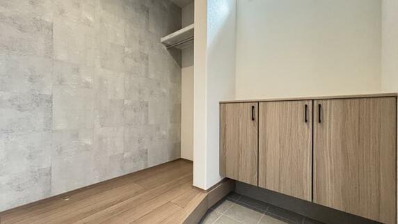 内装明るく開放的な玄関。収納も豊富で、お家の「顔」をいつもキレイにしておけます。