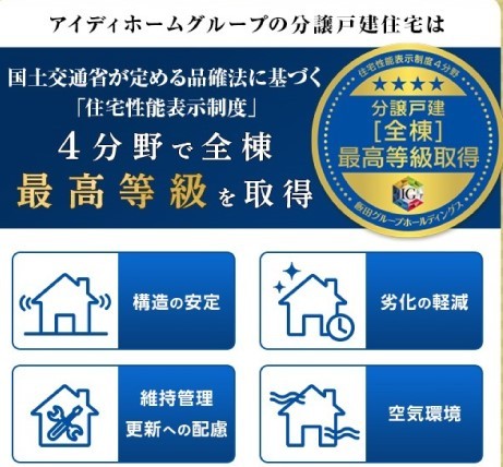 その他画像『リナージュ』は住宅性能表示基準の4分野「構造の安定」「劣化の軽減」「維持管理更新への配慮」「空気環境」の厳しいチェックを通過!安心で高品質な住まいをご提供しています。