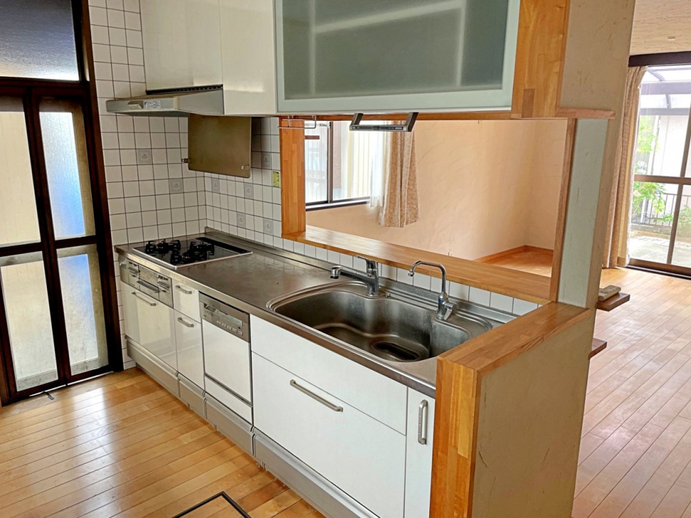 キッチン家族との会話も楽しみながら料理ができ、調理器具も沢山収納可能です
