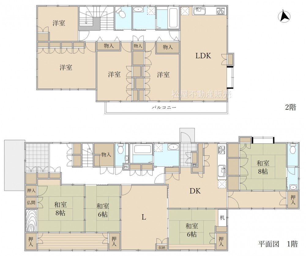 セールスポイント | ■2世帯同居が可能な9LDK!1階2階にそれぞれLDK、浴室、トイレ付 ■スーパーやコンビニ、ドラッグストアが徒歩圏内で住環境良好♪ ■収納スペースが豊富でお部屋を広々と使えます | ||