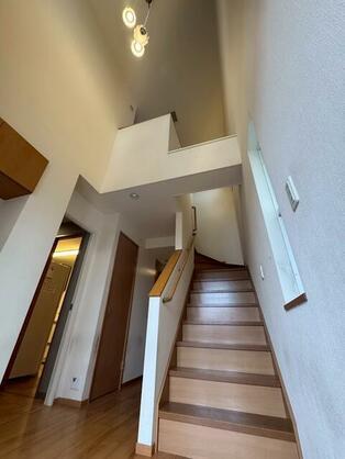 内装明るい日差しがたっぷりと入り、開放感のある上部吹抜け玄関スペース。