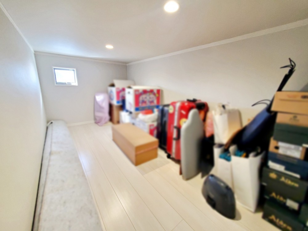 内装【小屋裏収納4帖】 収まりきらない衣類や、クリスマスツリー、雛人形などの季節物を片付ける際に小屋裏収納は役立ちます。