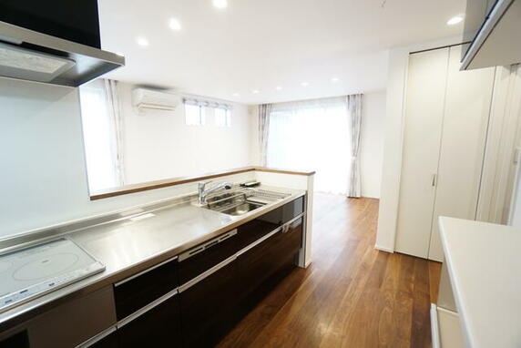 キッチン【キッチン】 リビングで遊んでいるお子様を見ながらお料理ができ、子育て中のパパママにも安心の設計です!