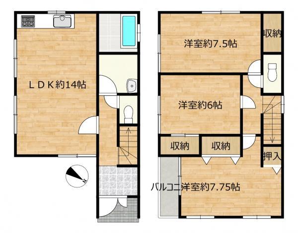 | 土地面積 | 99.58m²(30坪) | 建物面積 | 92.74m²(28坪) |