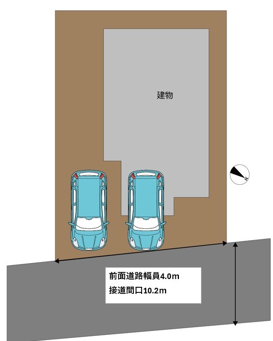 | 接道状況 | 状況:角地北東側 幅員4.9m 公道 北西側 幅員5m 公道 | ||
