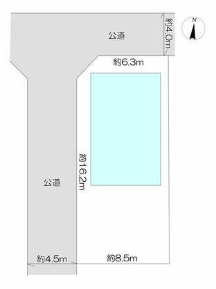 | 接道状況 | 状況:角地西側 幅員4.5m 公道 16.2m接面北側 幅員4m 公道 6.3m接面 | ||