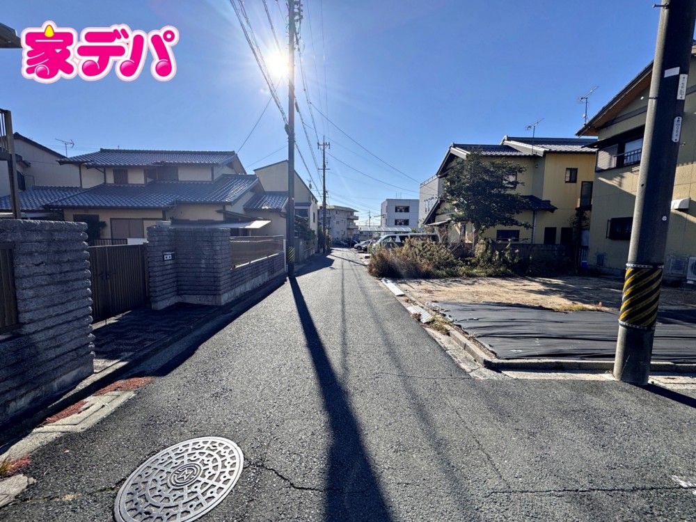 外観前面道路:東側、見通しが良く、車の移動もスムーズに行えます。
